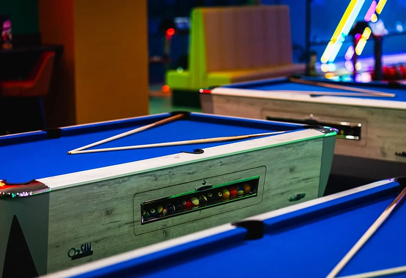 American pool tables are known for their larger pockets and faster playing surfaces, making them a popular choice for home games rooms and clubs.