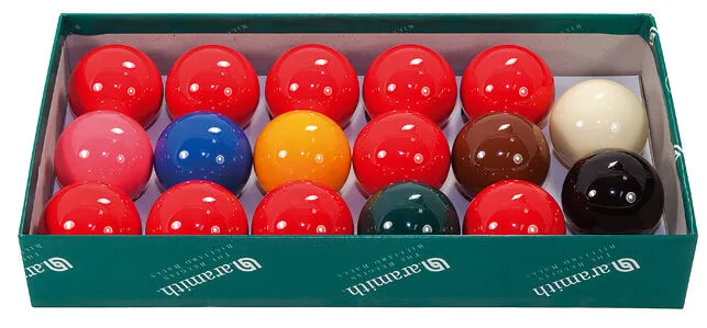 Genuine Belgian Snooker balls from Aramith, acknowledged World Leaders in billiard ball design and manufacture.