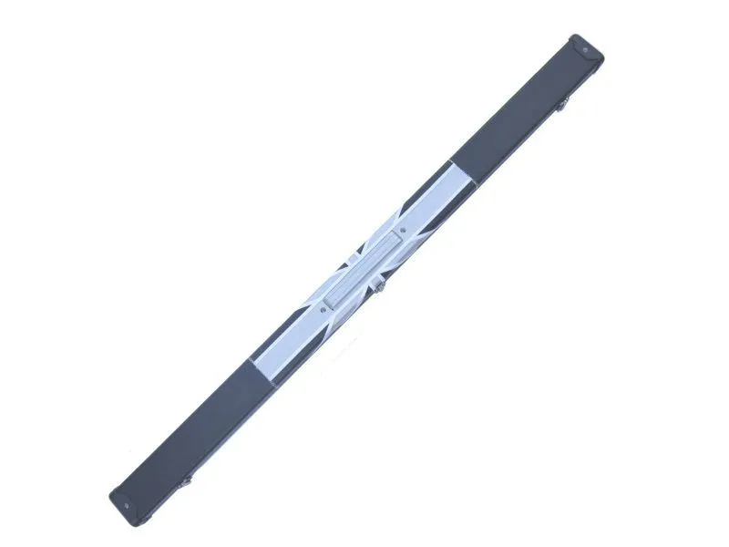 Black & Greyย leatherette cue case with modern Union Flag patterned detail. These cases are skilfully crafted and designed to offer your cue maximum protection with a unique yet traditional look and feel. These cases are constructed as a hard wooden case which is then beautifully upholstered with the finest quality leatherette on the exterior and with suede style leather on the padded interior which holds the cue in place and prevents the cue from scratching and bouncing around. The toughened case caps add to the cases rigidity. The solid metal hinges are of a design unique to SAM Leisure and were designed for a more secure seal compared to inferior brass clips. The interior of the case has a specifically crafted section to allow your cue case to hold chalk and tips securely. ย There is a suede lined divider running through the centre of the case to neatly hold a two piece 3/4 cue in place with room for an extension and a separate compartment for storage of chalk.
