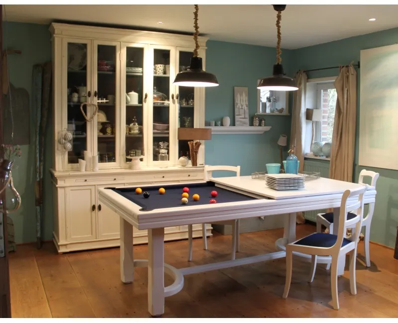 A stunning style pool / snooker table which would grace even the finest games rooms. This sumptuous cue sport table can be produced in English pool, Snooker, Carom or American versions, to give you the exact cue sports performance you desire. It is constructed from Kotibe African Hard wood which is incredibly stable and dense, making it perfect for crafting pool and snooker tables. The stunning attached images illustrate we can provide this table lacquered to your choice of finish. Our wood colour chart provides over 30 different finish options from light oak to ebony, and from pink to black lacquers.