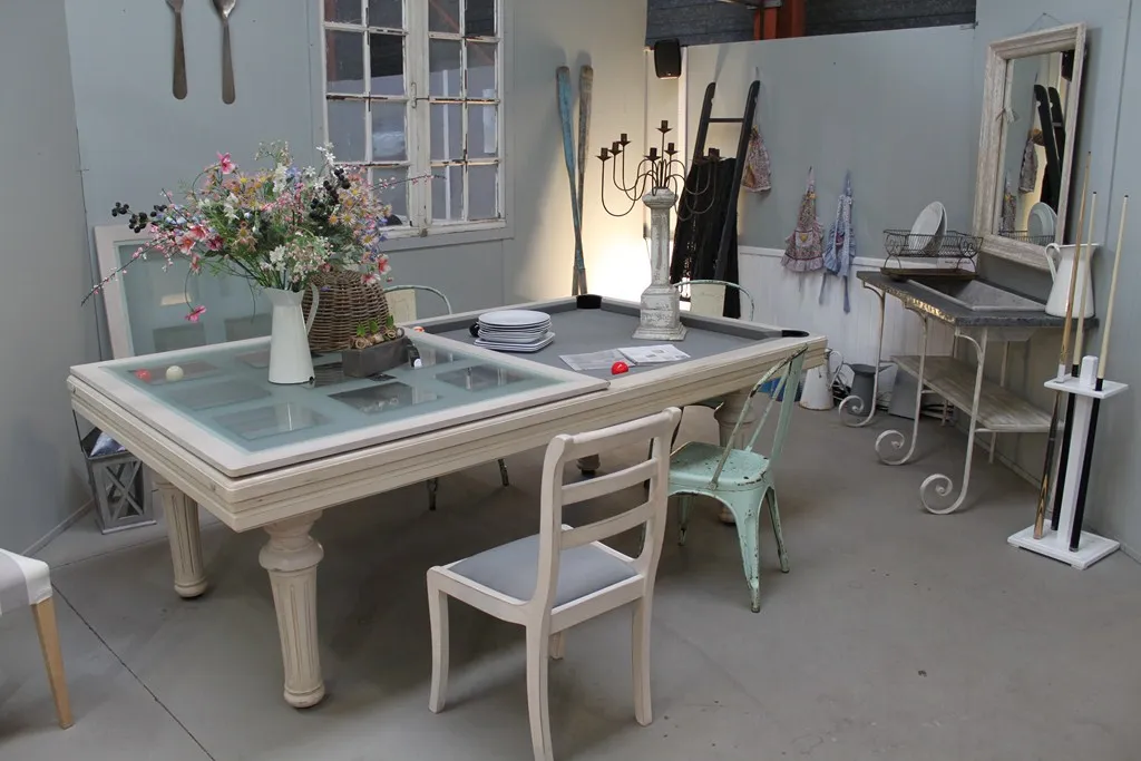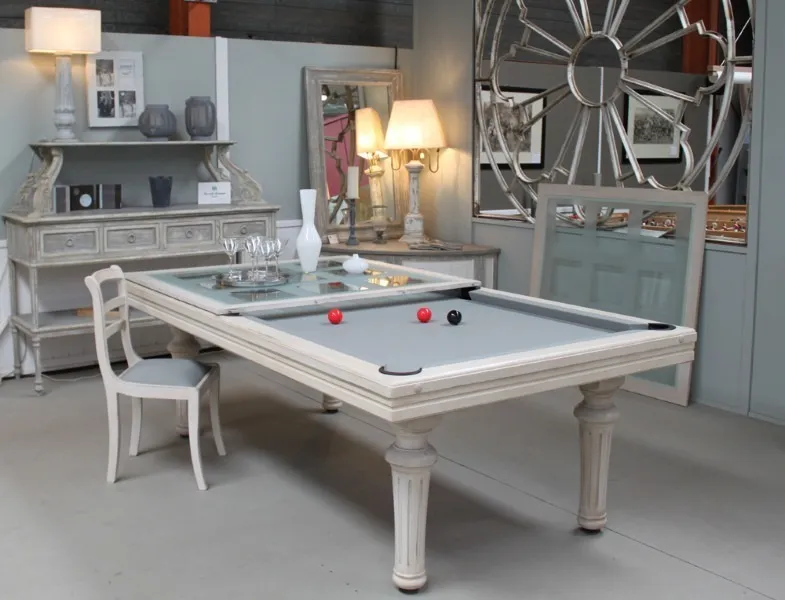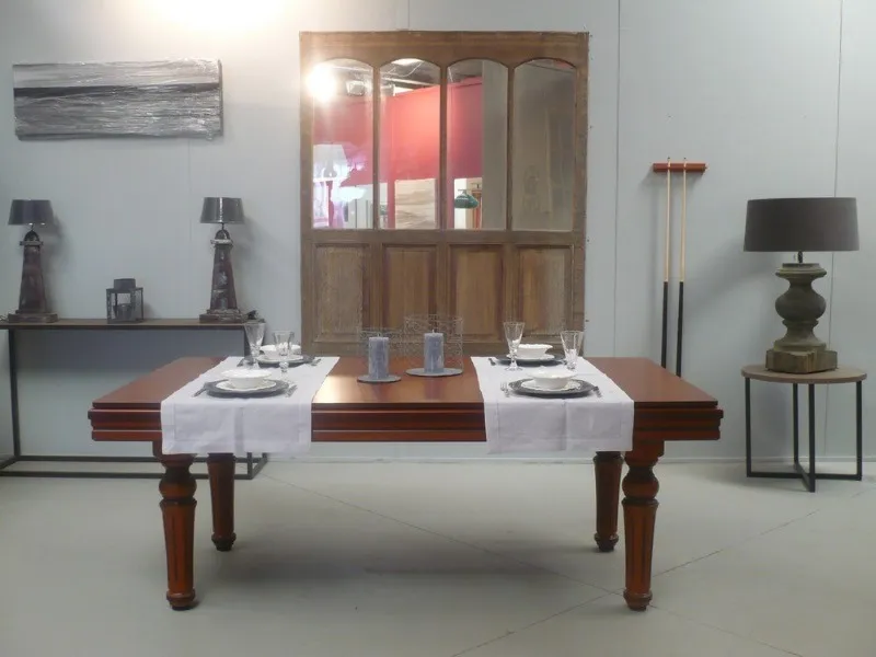 Height from floor to underside of table is 63cms, to top of table is 77cms. This slim table top is what allows this table to work so well as a comfortable diner and provides a perfect pool and snooker table. This is achieved by our unique steel frame which gives the strength needed in this slim section to rigidly support and accurately level the slate; a truly masterful piece of engineering.