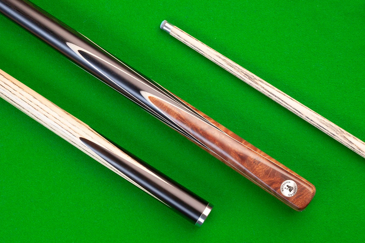 Particularly useful feature with this model is the 6 inch mini butt will fit in the base of the cue to allow and additional 6 inches (15 cms) of extra reach. Very useful and stops you having to overstretch on those awkward shots. Additionally the same mini butt will fit in the 3/4 joint position allowing you to shorten the cues overall length by 9 inches (22 cms). Again a fantastic feature which ensures you can use your Britannia cue even in tight spaces, plus makes achieving Masse and swerve shots that much easier.