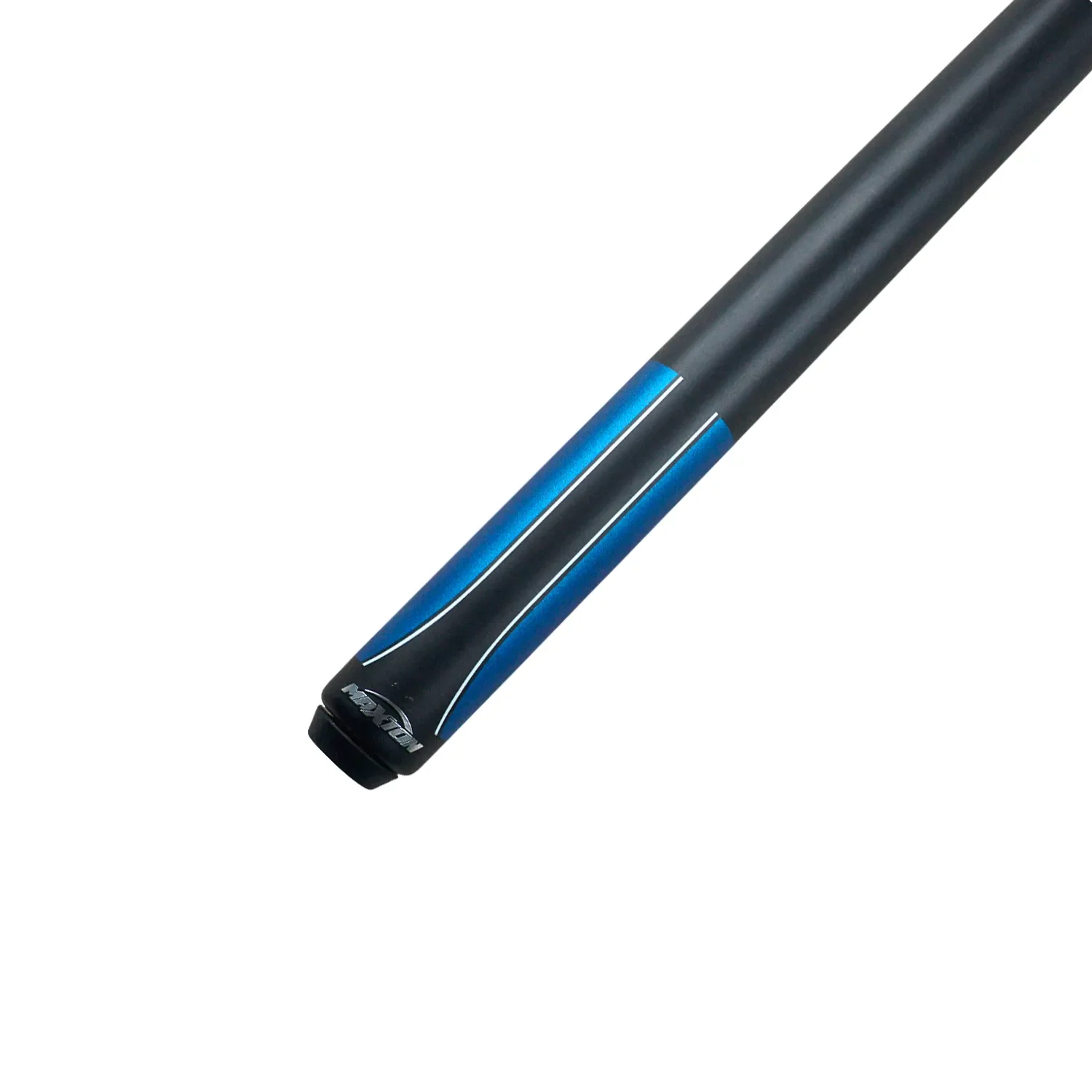 What really makes this cue stand out is the metallic blue forearm and sleeve, stylishly finished with black and off-white UV print. The black grip section creates a sharp contrast with the blue. The matte finish across the entire cue completes the modern design.