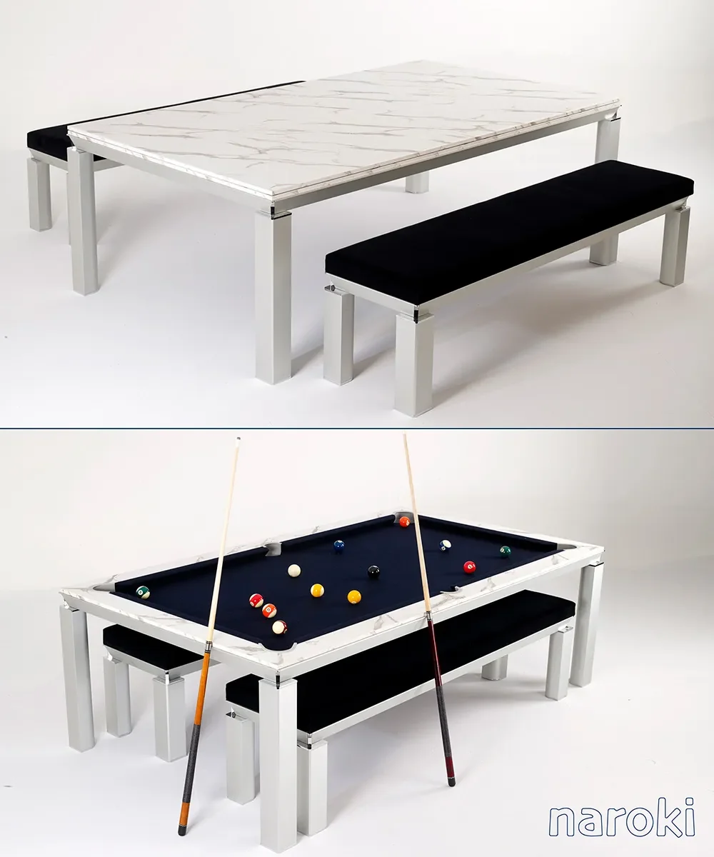 A table to match your interior design, play on the best quality pool table under the dining top.
