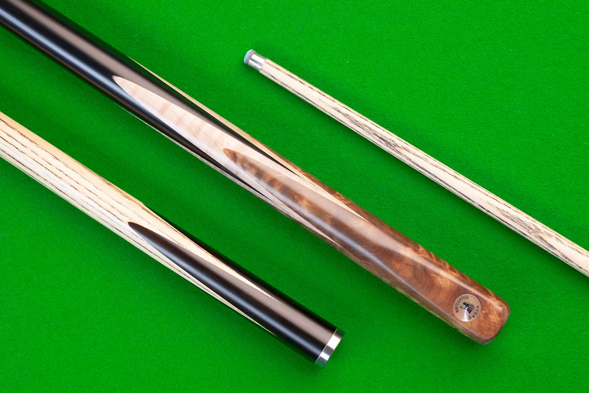 Particularly useful feature with this model is the 6 inch mini butt will fit in the base of the cue to allow and additional 6 inches (15 cms) of extra reach. Very useful and stops you having to overstretch on those awkward shots. Additionally the same mini butt will fit in the 3/4 joint position allowing you to shorten the cues overall length by 9 inches (22 cms). Again a fantastic feature which ensures you can use your Britannia cue even in tight spaces, plus makes achieving Masse and swerve shots that much easier.