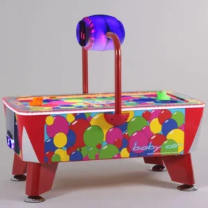 The cabinet features modern styling and overhead digital scorers, enhanced by vibrant, colour-changing LED lights in the legs, rails, and puck exits. This dynamic lighting syncs with gameplay to draw attention and create a lively atmosphere that keeps players engaged longer.