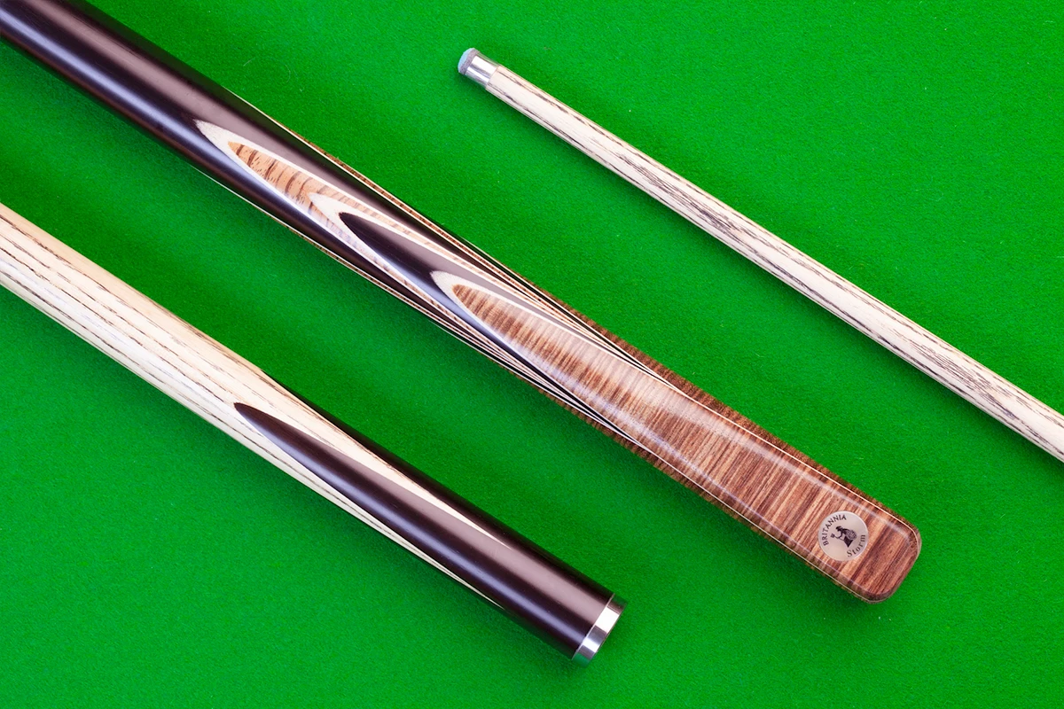 Particularly useful feature with this model is the 6 inch mini butt will fit in the base of the cue to allow and additional 6 inches (15 cms) of extra reach. Very useful and stops you having to overstretch on those awkward shots. Additionally the same mini butt will fit in the 3/4 joint position allowing you to shorten the cues overall length by 9 inches (22 cms). Again a fantastic feature which ensures you can use your Britannia cue even in tight spaces, plus makes achieving Masse and swerve shots that much easier.